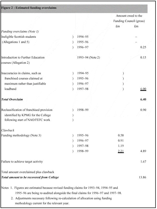 11. The National Audit Office reported that during the period 1993-94 to 1997-98, the College had over claimed a substantial amount of grant.[2] The Committee asked the Funding Council how much in total was involved. They said it was £14 million overall (Figure 2).[3]